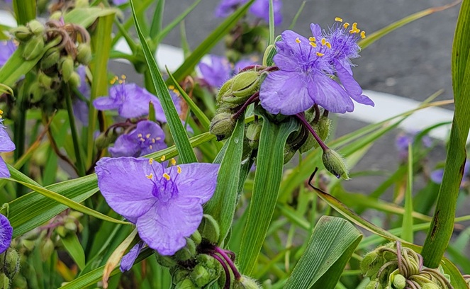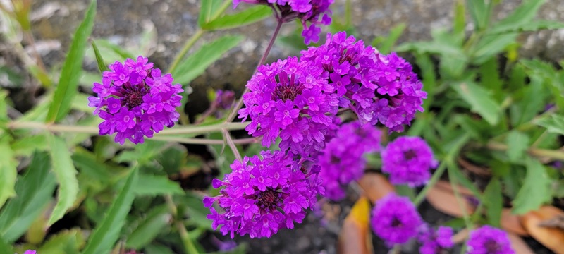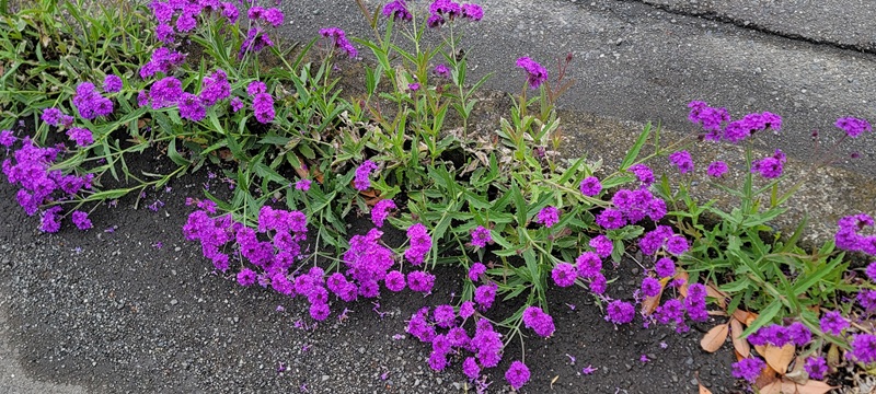 道路の すみには この花が目立ちます。バーベナでしょうかね?