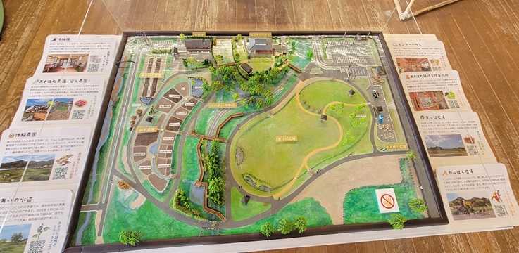 園の 模型撮ってきました。上の方 右側に 駐車場 上中央に センターが そこの中に この模型があります。