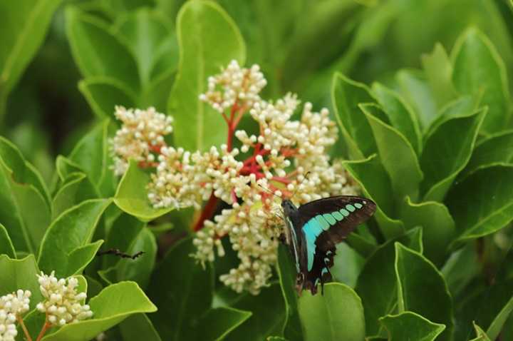 画像は 6/11 船越堤公園 この樹に咲いている花に アオスジアゲハが 沢山いました。