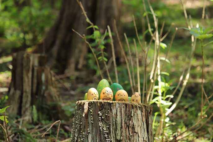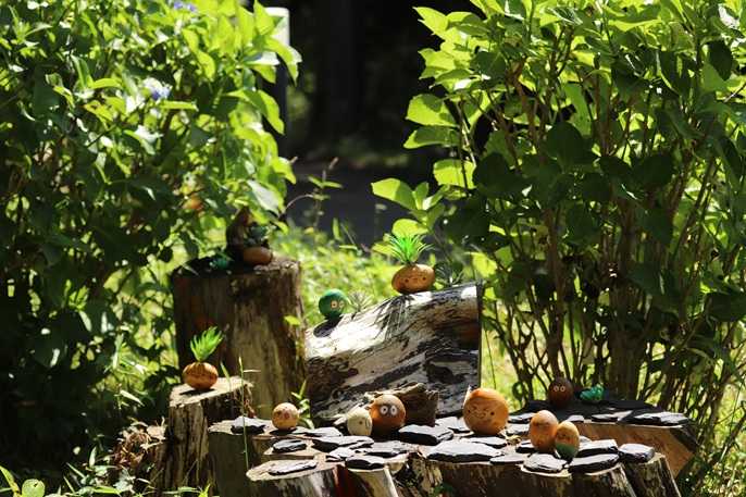 園内の切り株にいる kicoro。