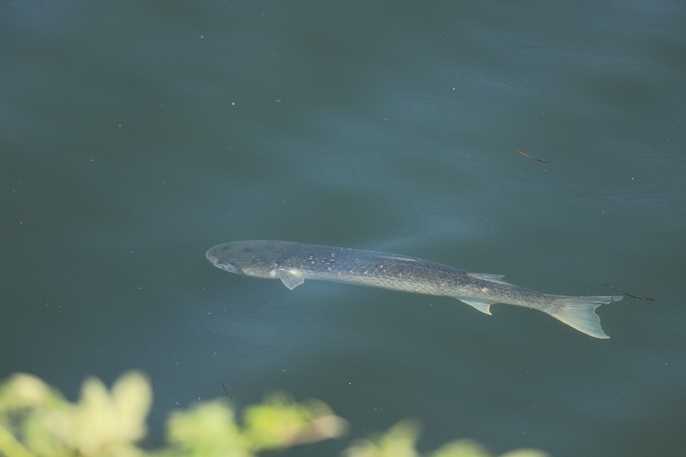 いつもの住魚 ボラだ 悠々と 泳いでます。