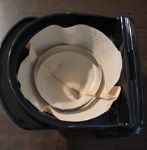 以前は 濡れてくると フィルターが倒れて コーヒー豆を 覆ってしまい 味の薄いコーヒーになってしまいました。 今は このわっぱで 安心です。