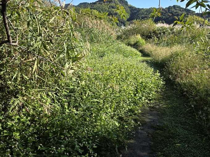 この日 塩田川 この橋から 下流に 草刈りは終わっています。