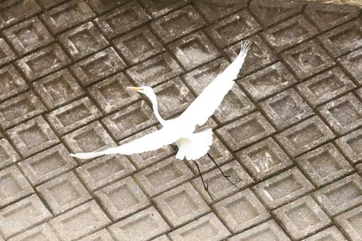 ダイサギが 人気を感じて 飛び立ちます。