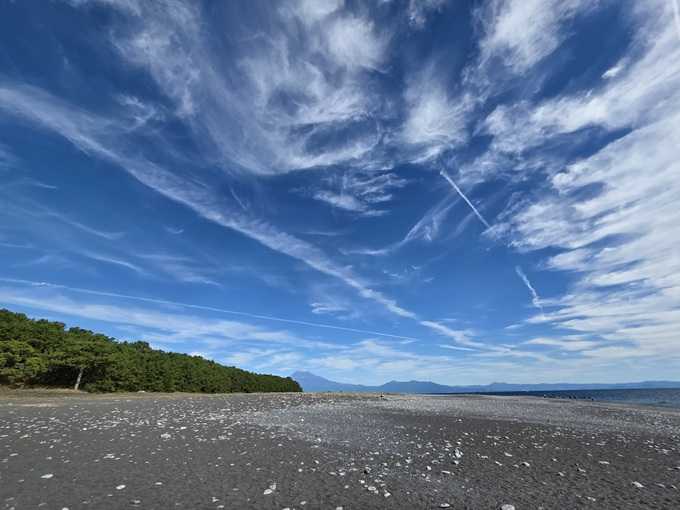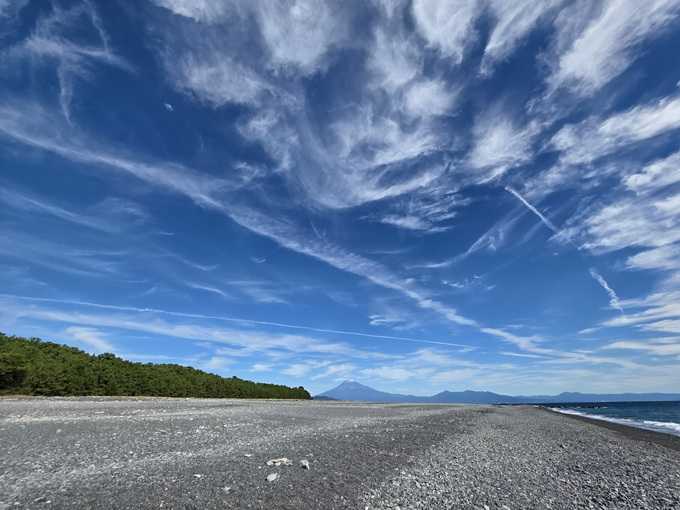 もう少し 海岸に寄ります。富士山の全容が見えます。
