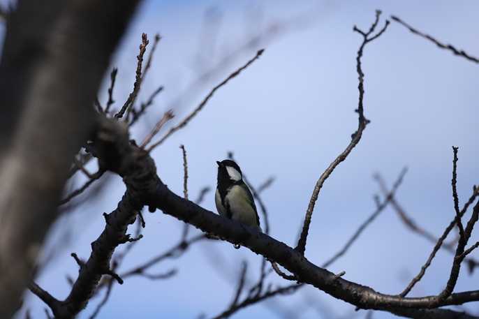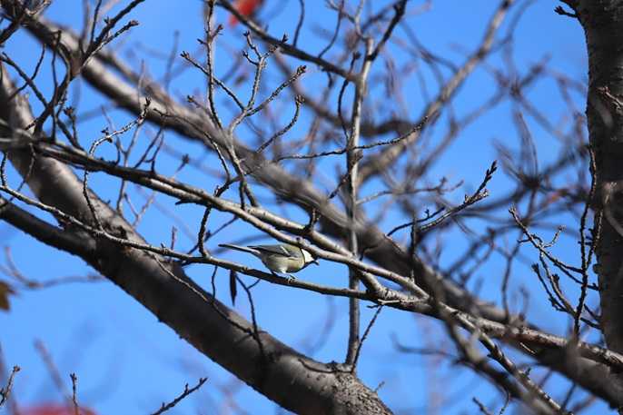 画像は 11月6日 塩田川からの帰り  すっかり葉が落ちた 木の枝に シジュウカラ
