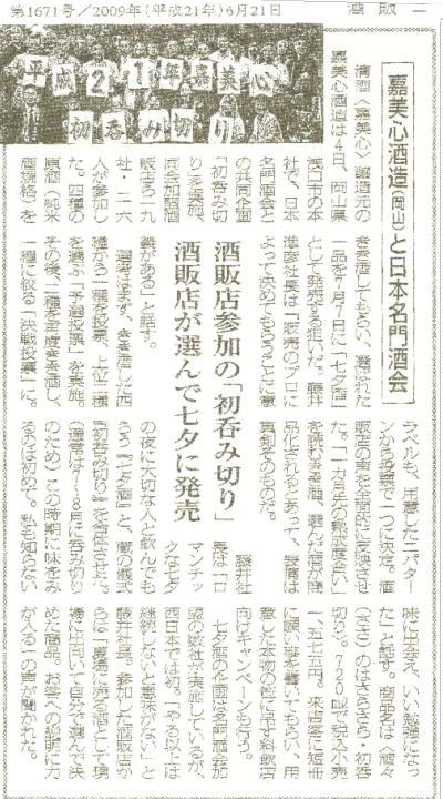 おもろい酒・珍しい酒あります♪別に私が載ったわけやないねんけど・・・先日 岡山と奈良の蔵元へ狂気酒博士が行き蔵元のタンクを試飲して博士が選んだお酒を七夕酒として詰めてくれはんねんけどね明日が予約締切やねんわ(ありゃ フォット蔵がメンテナンス中で画像が見えない!)岡山嘉美心に業界新聞が取材に来てはって画像が良く見えないわねー嘉美心のお酒は 1.8Lも詰めて貰いますねんしつこいけど 奈良の蔵元のも明日が受注〆切やねんわー狂気酒博士の舌信じてご予約いただき感謝アルコールの弱いあの方への贈り物は・・・純米大吟醸 けーき♪ posted by (C)狂気酒博士アシスタント昭和のあの時代へ posted by (C)狂気酒博士アシスタント7月19日・7月31日土用の丑には酒屋の鰻 posted by (C)狂気酒博士アシスタント指宿温泉で育った うな太郎 posted by (C)狂気酒博士アシスタント生活習慣病への健康飲料には これ飲む点滴(*^^)v posted by (C)狂気酒博士アシスタントおもろい酒・珍しい酒あります♪