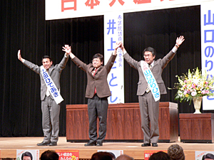 ここ数日本当に寒い日が続いています。 朝早く起きた夫が「寒いぞ外は-15度だぞ」とのこと。 あちこちで水道が凍ったとか、排水が凍った話は聞いていましたが、我が家も温水器が凍ってでなくなってしまいました。一番低い温度で入れっぱなしにしておいたのに水は出るのですがお湯がでません。 夕方になってやっとでるようになりました。 諏訪湖が全面結氷しました。諏訪盆地は本当に寒くなります。 参議院議員の井上さとしさんを迎えての演説会が岡谷で行われ会場は1000人の熱気に包まれました。現役の参議院国対委員長をしている井上さんの話は、実際に国会での論戦も交え本当にわかりやすく元気の出るものでした。 演説会で壇上で・・上田ひであきさん、井上さとしさん、山口のりひささん
