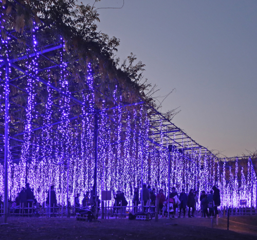 で、今日は『鬼平』でうな重を食べてから 館林のつつじヶ丘パークインとこで 白鳥くんや鵜くんやサギくんの写真を、 それから多々良沼 → 足利フラワーパークに。 グルメグランプリ なんてゆーけど、 それがコロッケだってラーメンだって そんなに幾つも食べられないだろーに、 どー投票を? なんだか 雰囲気やら 運だかで決まっちゃいそーでナンだかなあ? 私は焼き生姜コロッケみたいのを食べたけど、 特にどーとゆーことも無かったよ? で、夜の部、イルミネーションは 15時半からなのだな。