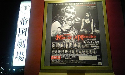 やっと観ました。松本幸四郎が市川染五郎のとき、1969年の初演からの1100回以上の上演回数にいたるライフワーク。自ら演出と、セルバンテス/ドン・キホーテを演じ、アルドンサ役の松たか子と父娘共演のミュージカルです。3年ぶりの再演とのことです。16世紀末のスペイン、教会を冒涜した罪で投獄されたセルバンテスが、囚人たちと共にドン・キホーテについて語る即興劇を演じる。芝居自体が、実際に獄中(冤罪)でドン・キホーテの着想を得たというセルバンテスの歴史的事実を元に、あたかもそれを再現する構造になっている点が面白い。ドン・キホーテの物語で描かれている・・・ 本当の「狂気」は、夢におぼれることよりも、現実をただ受け入れて戦わないことではないか、というテーマは永遠普遍です。松本幸四郎演じるセルバンテスは、牢での即興芝居で、自分を騎士ドン・キホーテと思い込む男を演じるという、複雑な二重、三重構造の演じ分けが見事。松たか子も、まさに体当たり演技で粗野な面と、ドン・キホーテに純粋な部分を見出される様を熱演。けなげな従僕、サンチョ・パンサの佐藤輝の主を思う気持ちもいい。この回は、松本幸四郎さんがカーテンコールで、「見果てぬ夢」を英語で披露。これは、ブロードウェイのオリジナルの演出家、アルバート・マールさん、初代のアントニア役のミミ・タークさんが来ていたため。松たか子さん、月影瞳さんから花束贈呈がありました。また、今公演では、<牢名主及び宿屋の主人>役の上條恒彦がお休みのため、瑳川哲朗が参加。良く考えると、この牢名主の様な役は、他の芝居も含めて、ほとんどといっていいほど、上條さんが演じていた気がします。脚本:デール・ワッサーマン 作詞:ジョオ・ダリオン音楽:ミッチ・リー 訳:森 岩雄/高田蓉子 訳詞:福井 崚演出:松本幸四郎出演:松本幸四郎/松たか子/佐藤輝/瑳川哲朗/福井貴一/月影瞳/ 石鍋多加史/荒井洸子/駒田一/他公式: http://www.tohostage.com/lamancha/index.html-----※ブロードウェイ版CD。ラ・マンチャの男 オリジナル・ブロードウェイ・キャスト盤※ミュージカルのヒットを受けての映画版。セルバンテス/ドン・キホーテを、ピーターオトゥール、アルドンサを、ソフィア・ローレン!!という豪華版。【送料無料選択可!】ラ・マンチャの男 / 洋画※あのジョン・リスゴー主演、ピーター・イエーツ監督、SFX使用という異色作?なんか変。ドン・キホーテ~ラ・マンチャの男~☆