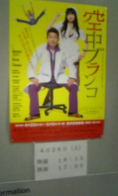 実は最初は演出の河原雅彦さん、脚本の倉持裕の芝居を観て、その関連で予約購入。河原さんは、昨年の赤坂RED/THEATERでの「真心一座 身も心も第二章 流れ姉妹~ザ・グレートハンティング」の演出と出演、プロペラ犬旗揚げ公演「マイルドにしぬ」では水野美紀さんと二人芝居。(そしてTV「ハリ系」や、映画「スシ王子!ニューヨークへ行く」では監督の堤幸彦と共同脚本までしているという)倉持さんは、昨年のペンギンプルペイルパイルズの「ワンマン・ショー」「ゆらめき」の脚本。「空中ブランコ」には、この2作にも出ていた同じくペンギンプルペイルパイルズの小林高鹿さん、ぼくもとさきこ さん(今回は猛獣使い!という珍しい役柄)も出演。個人的に勝手に、倉持さんは、河原さんは小劇場の印象が強く、これだけの大きな規模の舞台だとは思っておりませんでした。話は、空中ブランコ乗りの特別往診にサーカスに乗り込んだ精神科医と看護婦の、はちゃめちゃな治療が巻き起こす騒動。この医者が、ただの出たがりとしか思えないのに、サーカスという閉鎖社会に無神経にあがりこんで暴れているうちに、自然と周囲の閉塞感をぶち破っていくところが面白い。舞台上には、空中ブランコの装置と網もあり、宮迫さん、坂元さんらのブランコや落下もある仕掛けの大きなにぎやかな芝居でした。(※ピンボケになっちゃいました)他の出演者も、さまざまな方面から実にバラエティに富んでいて、その混ざり合いによる化学反応が芝居の妙でしたか。永山たかし さんは昨年の新国立劇場小劇場「スイッチを押すとき~君たちはなぜ生きているんだ?~」主演。酒井敏也さんは、ダンダンブエノ「砂利」に出演、団長役。「中野ブロンディーズ」に出てた千明由佳さんは、他G-Rocketsの方とアクション担当。高橋由美子さんは「モーツァルト!」「星屑の町~新宿歌舞伎町篇~コマ劇場SPECIAL~」に出てましたが、今回のアクロバット担当役もうまい。宮迫博之さんは軽々と演じているように見える。佐藤江梨子さんが舞台にあがると、ついついスタイルのほうにばかり目が行ってしまう。【原作】奥田英朗(「空中ブランコ」文藝春秋刊) 【脚本】倉持裕 【演出】河原雅彦【出演】宮迫博之(雨上がり決死隊) 佐藤江梨子 坂元健児高橋由美子 小林高鹿 永山たかし 上山竜司(RUN&GUN) 汐崎アイル YUKO(FLIP-FLAP)AIKO(FLIP-FLAP)太田緑ロランス 中島徹 山中陽子(G-Rockets)関根あすか(G-Rockets)齋藤久美子(G-Rockets)千明由佳(G-Rockets)塚越志保(G-Rockets)吉田望(G-Rockets)今奈良孝行 ぼくもとさきこ川原正嗣 吉田メタル (劇団☆新感線)酒井敏也 尾藤イサオ■詳細/アトリエ・ダンカン公式サイト http://www.duncan.co.jp/web/works/buranco/branco.html-----※原作:“精神科医・伊良部一郎”シリーズ 第1弾『イン・ザ・プール』第2弾『空中ブランコ』第3弾『町長選挙』 空中ブランコ空中ブランコイン・ザ・プール町長選挙☆