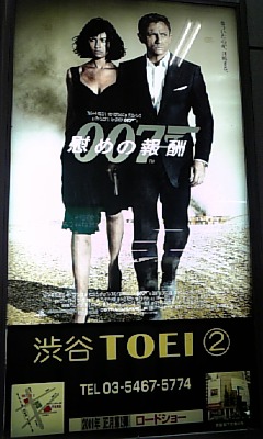 ちらほら宣伝が始まりました。映画ポスター『 007慰めの報酬 』渋谷TOEI2 JR渋谷駅2F改札前 2008年11月1日撮影 2009年正月第2弾日本公開(全米公開は2008年11月14日)世界公式HP: http://www.007.com/日本公式HP: http://www.sonypictures.jp/movies/quantumofsolace/ウィジェット(ブログパーツ):http://www.007.com/widget/--------------------------Quantum of Solace (2008)007/慰めの報酬監督:マーク・フォースター原作:イアン・フレミング(007短編集『薔薇と拳銃』より「ナッソーの夜に」)音楽:デヴィッド・アーノルド主題歌:「Another Way to Die」Jack White & Alicia Keys出演:ダニエル・クレイグ(ジェームズ・ボンド)マチュー・アマルリック(ドミニク・グリーン)オルガ・キュリレンコ(ボンドガール)ジェマ・アータートン(フィールズ)ジェフリー・ライト(フェリックス・ライター)ジャンカルロ・ジャンニーニ(レネ・マティス)ジュディ・デンチ(M) 他--------------------------サントラ国内盤CD:《送料無料》(オリジナル・サウンドトラック) 007/慰めの報酬~オリジナル・サウンドトラッ...国内盤発売日:2008年11月26日☆人気ブログランキングへ