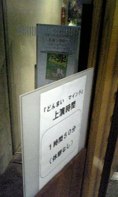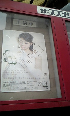 田畑智子さんは、NHK朝の連ドラ主演、大河「新撰組」から、舞台では先日の「羊と兵隊」が印象的な、若いのに独特の存在感のある面白い方で、いま注目している女優さんの一人です。 ひとり芝居といえば、何もない舞台にただ1人、椅子ぐらいしかなくて、観客に向かって話すか、(これが観ていて照れるので苦手・・・^^;)モノローグで進行するものというイメージしかなかったのですが、予想に反して、ワンルームマンションにソファもキッチンもある舞台。しかも、登場人物も1人だけではなく、見えない数人との共演。見えるのは田畑さん一人だけで進行するという形式が面白い。(見えない共演者がドアを開け、ぶつかるとソファがずれたりします。)そして実は、この仕組みがストーリーにも生かされています。話も、人間観察・人間ドラマ・恋愛物語や、モノローグのような内容かと思いきや、恋愛ものから始まって近未来サスペンスになっていくのが面白く、日本もテロの標的にされていて、今日・明日にもテロが身近に起きる危険がある近未来(麻生政権の後)という伏線が生きています。途中でどんでん返しがあり、泣かせに入ったのかと思えば、またまたどんでん返しがあったりして、油断ならない内容です『バッタモン』っていうのも、そこか!といううまいタイトルでした。私の『ひとり芝居』に対する狭い思い込みを大きく変えてくれました。 今日のザ・スズナリ。----------------------------------------------------▼トム・プロジェクト プロデュース<田畑智子ひとり芝居『バッタモン』>公演日: 10/29(水) ~ 11/3(月・祝)会場: ザ・スズナリ 作・演出: 中津留章仁出演: 田畑智子----------------------------------------------------田畑智子主演 コロムビアミュージックエンタテインメント 私の青空・総集編(上) 私の青空・総集編(下) / 田畑智子コロムビアミュージックエンタテインメント 私の青空・総集編(上・下)BOX☆人気ブログランキングへ☆↑ランキングに参加してます。↑よろしければ1クリック投票いただけると嬉しいです。m(_ _)m
