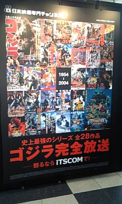 これもUPを忘れてましたが、JR渋谷駅改札近くで、たまたま宣伝していたものです。日本列島ゴジラ破壊地図など、パネルとビデオモニター、写真のフィギュアなど、ごく簡単な展示。※詳しくは下記URLで。ゴジラ関係のコンテンツが用意されてます。お姉さんが3人、マイクでアナウンスとアンケート調査(ゴジラとは無関係の内容)をしていました。ちなみに私はこのチャンネルは観れません。(;;)ゴジラももう少し経つと(現行DVDBOXがはける前くらい)、HDリマスター,ブルーレイディスクでリリースされるのでしょうねぇ・・・。 [日本映画専門チャンネル] http://www.nihon-eiga.com/godzilla/日本映画専門チャンネル開局10周年特別企画 10月から3ヶ月連続でシリーズ全28作品 史上最強のハイビジョン ゴジラ完全放送. TOP ・ イントロダクション ・ 放送作品一覧 ・ ハイビジョンプロジェクト ・ Gインタビュー ・ スペシャルコラム ...☆人気ブログランキングへ
