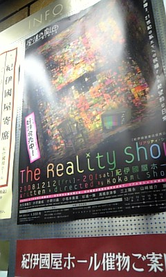 初演でファンになった『虚構の劇団』の第2回公演は、会場が早くも「紀伊國屋ホール」とは!びっくり。前回公演作のテーマは、ネット上のいじめやブログ+民話、今回は、サバイバル番組(リアリティ・ショウ)とWeb生中継サイト+カルト宗教+鴻上版ロミオとジュリエット。取り上げる題材が今回も”今”のネタでビビット。そして、前作は、劇団解散、出直しの話でしたが、今回も舞台は劇団、観客500人に届かず伸び悩んでいるという状況。そう、今回も劇団の話。前作とは無関係ではありますが、前作ラストでは劇団は旅に出て、本作の冒頭では劇団がある家に到着したところからスタートします。もしかして、『虚構の劇団』のやる芝居は、すべて「架空の劇団の話」なのでしょうか。だから「虚構の劇団」という名前なのでしょうか。※紀伊國屋書店前ある家に劇団員全員が缶詰になり、稽古の様子だけでなく、すべての生活がWebで24時間生中継、。人気投票・不人気投票あり、途中からは週一回の告白タイムができて、「あいのり」だったり「ねるとん」だったり。中途半端に観られているよりすべて完全に観られているならそのほうがいい。というのもわかる気がします。誰も見てくれないよりも余程いいかも?ああだこうだもめながら、一緒に芝居を作る仲間たち、こういう空間を観ながら、観客としてこの時間を共有して一緒に楽しめるのがとってもいいんですね。また、それぞれの俳優さんたちの個性と、そのコンビネーションがより生きてきた、自然に息が合ってきた感じがします。パンフレットを読んでも、鴻上さんも意識的にキャラクターを引き出しているようです。それぞれの個性が、とても反映された役が作られてます。唯一欲を言えば、踊りは減ってちょっと残念でしたが、またまた次回公演が楽しみになりました。休日は先約があってすべて平日。あさっての2回目の観劇の日記では、それぞれの俳優さんたちにコメントします。※クリスマスの新宿駅アルタ前━━━━━━━━━━━━━━━━━━━━━━━━━━━━━━━━▼▼▼虚構の劇団 第2回公演▼▼▼「THE REALITY SHOW‐リアリティ・ショウ‐」http://www.thirdstage.com/k/2008/09/30-120000.php━━━━━━━━━━━━━━━━━━━━━━━━━━━━━━━━作・演出:鴻上尚史出演:大久保綾乃、小沢道成、小名木美里、小野川晶、杉浦一輝、高橋奈津季、三上陽永、山崎雄介、渡辺芳博公演日程:2008年12月12日(金)→12月20日(土)紀伊國屋書店提携公演会場:紀伊國屋ホール━━━━━━━━━━━━━━━━━━━━━━━━━━━━━━━━ドラマや歌番組ではない、「本当の人生」を登場させたTV番組を、世界基準では、『リアリティ・ショウ』と呼ぶ。『バラエティ・ショウ』は、残念ながら和製英語で、コントや芸人トーク以外の多くは、『リアリティ・ショウ』に分類される。テレビカメラがなくても、携帯カメラがある。テレビ局がなくても、ブログがある。うんと哀しい時、これはショウなんだとつぶやいて安心しよう。うんと楽しい時、これはリアルなのかと念のために確認しよう。リアルなのに、ショウ。ショウなのに、リアル。それは、21世紀の私たちの祝福された絶望的な日常。幻の観客の熱烈な拍手を求めて、リアルなショウは終わらない。(以上、公式HPより。)☆人気ブログランキングへ☆↑ランキングに参加してます。↑よろしければ1クリック投票いただけると嬉しいです。m(_ _)m