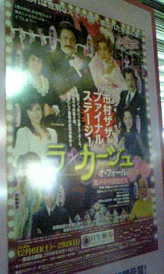 市村正親さんの芸達者ぶりはさすが。鹿賀丈史さんは力まない軽いコミカルな役柄がよかったです。再演ですが、市村さんは今回でこの役は最後、鹿賀さんは今回始めての出演とのこと。二人の微妙なゲイの演技も見物でした。当然、ゲイクラブのショー・シーンが目玉なのですが、個人的には、これ見よがしのショーシーンよりも、街角やレストランで大勢の人々と歌い踊るシーンのほうが感動できて好きでした。「そのまま、ありのままで」、「今このとき」が大切だ、というのがテーマですね。━━━━━━━━━━━━━━━━━━◇◆日生劇場/ミュージカル◆◇『ラ・カージュ・オ・フォール』CAST 鹿賀丈史、市村正親/島谷ひとみ、山崎育三郎/香寿たつき/真島茂樹、新納慎也/今井清隆、森公美子 他作詞・作曲 ジェリー・ハーマン脚本 ハーベイ・ファイアスティン原作 ジャン・ポワレ演出 山田和也日生劇場HP: http://www.tohostage.com/lacage/index.html☆人気ブログランキングへ