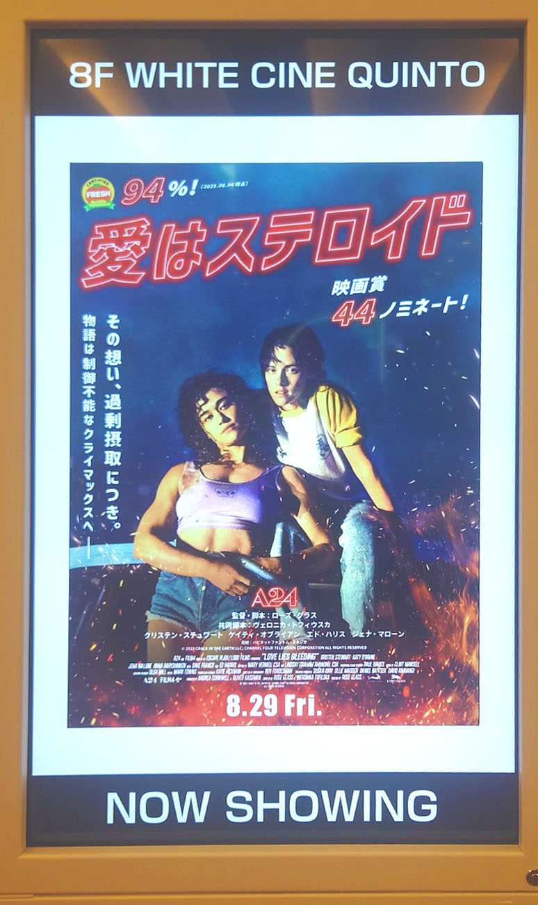 レビュー『愛はステロイド』シスターフッド映画の傑作!「純愛は最強のステロイド!」突き抜けたクライマックス!エド・ハリス怪演!2025.9.15.ホワイトシネクイント日本語題名がぴったりでした。まさに、「愛は最強のステロイド!」という映画でした。上げるために、前半一方的なDVシーンが多いと嫌だなあと思い、観るのを迷ってましたが、見て大正解!ルーとジャッキー、女性二人の純愛物語、シスターフッド映画の傑作!二人の計画は、進むたびに問題が出て、そのたびにルーが後始末におおあらわ。ステロイドに浸食されていくジャッキーの恐怖、悪の毒親が迫る。そして、行くところまで行った吹っ切った表現のクライマックス!確信犯的に飛び抜けた思い切りの良さに感激!主演二人の好演、そして、エド・ハリスの虫好き毒親の怪演!あの髪型、頭にきてカブト喰っちゃうところなんか最高です!人気ブログランキングへ☆↑ランキングに参加してます。↑よろしければ1クリック投票いただけると嬉しいです。m(_ _)m