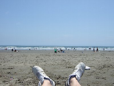 お疲れ。昨日はサーフィンをしたいっていう友達の付き添いで九十九里浜に行ってきました。10時過ぎに海岸に着くと、もうサーファーだらけ。こんなにいるんだねぇー。海のスポーツはやらないって決めてるオレは簡易ベッドを出して、昼寝。最近、写真を趣味にしている元同僚Mはそこいらをパシャパシャ。友達にサーフィンを教えるのは同じく元同僚のK。(彼はスノボもうまい)やっぱ、すごく難しいらしい。ちょっと凹んでいる。でもまたやりたいって言ってる。チャレンジャーだなー!さすがに4、5時間太陽の下にいると日焼けする。昨日はさほどでもなかったけど、今日はひりひりして日焼けっていうか軽いやけどじゃねーのか?ってくらいヤバイ。(足のすねあたりは歩くとピリピリくる)元々あまり日焼けしてないからなー。明日には治まってるといいけど・・・。