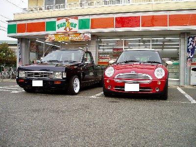 おっはりあー金曜からどうも調子が悪い。どうやら風邪をひいたみたいだ。今日は茅ヶ崎に行ってきた!D21が頼んでいるD21のオールペンを頼んだショップがそこにあって、作業が終了したからそれを取りに行ったっつう話。ホントはそのあと箱根の温泉でも入って帰る予定だったけど、国道1号がアホみたいに混んでて(いつもなんかな)何時に着くか分からないから、仕方なく途中で引き返してきた。それで地元に戻ってお好み焼き屋+他2軒(笑)はしごして今に至る。D21とMINI>D21ホントカッコ良くなったなーなんか成長を見守った感じで感慨深いものがあるよ!>MINI爽やかさスタイリッシュさではもう負けたわー笑>○○ボックス次となるとやっぱみんなで乗れるヤツがいいな!