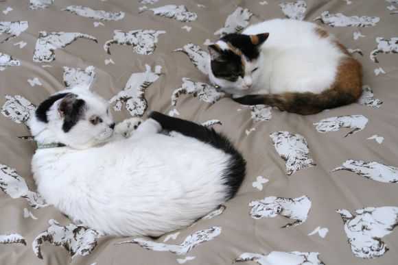 一昨日散歩のときにフリースを羽織るようになったと書きましたが、昨日はさらに冷え込んだうえに、小雨降る日でした。レインコートを着込んで、長靴に傘を差してのお散歩でした。かなり寒かったです。こんな日はお散歩に行きたくないんだけど、外でしか用足ししないゆりには欠かせませんね。さてそんな冷え込んだ日、昨日から冬掛けの羽毛布団を出したら、らん姉ちゃんまでその布団の上を占拠していました。今まで夏掛けには目もくれなかったのになぁ~!「やっぱり羽毛は暖かいわねぇ~!」でもお姫ママがいるときは、みんなくっ付いていたのにねぇ~!らん姉ちゃんときりは仲良かったはずなのに、今はくっ付くことはありません。この距離でも、かなり近い方です。せりは、お姉ちゃんたちには近づかなくなりました!皆でくっ付けば温かいのにねぇ~!母性が強くて、求心力が強かったお姫ママです。こんな猫団子はもう見られないのかなぁ~? ⇓ 肝っ玉母さんだったお姫に、ポチッとな!にほんブログ村