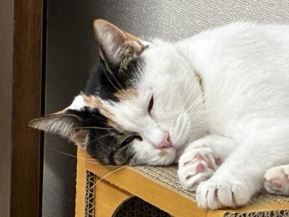 「今日はどこに行くの?」安曇野から南下し、長野県飯田方面へ向かいます。その前に、旅館の朝食ね!こんな設えで、どちらかと云うと簡素かもしれませんが、旅館で頂く朝食も美味しいですよね~。さて向かうは、以前にも登場したたくさんの猫ちゃんを面倒見ておられる元ブロガーの「ミミの母さん」の所です。前回お伺いしたのは、2021年の6月でしたがその時は13匹の猫ちゃんの面倒をみられていました。こちらにその時の13匹の猫ちゃんが載っています。その時に会った猫ちゃんは3匹。(近くに住む息子さんの所に6匹引っ越ししたそうです)名まえの自信がないですが、たぶんキナちゃん。たぶんミミちゃん?余命宣告された猫ちゃんもいましたが、カメラを向けられませんでした。お話してると、なんと捨て猫ちゃんを拾われたとの事。それもまだ生まれたての赤ちゃん猫5匹で、本当の乳飲み子だったのですがその母猫ちゃんは事故で亡くなってたようです。と云うことで5匹の赤ちゃん猫をあずかり、シリンジで交代にミルクを飲ませ必死に面倒見たとの事。その子たちがいる部屋に入るとワラワラと!奥から大君、秋君、茶々君、まめ君、桜ちゃんかな?1枚ずつ獲れば良かったのですが、とりあえずママさんが抱っこした大君ね!一番やんちゃな子のようです。子猫は可愛いねぇ~!こんな5匹の子猫とたっぷり戯れましたが、その間にどの猫の鳴き声も聞こえませんでした。おそらく生まれて間もなく母猫を失ったため、鳴き方も分からないのかもしれません。でもこんな子猫見てるとまた飼いたくなっちゃうねぇ~!「私もあんな頃があったのよ~!」猫ちゃんはあっという間に大きくなっちゃいますね。さてこの日のお宿は、明日にね!「赤ニャンに敵うものなしね!」 ⇓ あの頃は可愛かったせりに、ポチッとな!にほんブログ村
