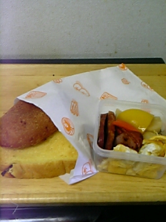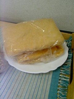 はい、七草の朝でございます。ゆうべはちゃんと教えにならい、“とんとん 唐土の鳥が、渡らぬうちに、 七草ナズナ 七草ナズナ”って包丁とすりこぎ持ってゆがいた七草を刻みましたよー“今年も火箸忘れた!”って気がつくのは、いつも刻み終わってからなんだよねー【めざましてれび】でわざわざ京都から中継して、“今日では消え行く七草ばやしです”っていうてはったけど、みんなせえへんの?おかゆさんのおともは、八軒屋の永田屋の塩昆布、今熊野のにしだやの【おらがむら漬】弟夫婦のお年賀にもらった鮎屋の佃煮。と玉子焼き。で、ごはんを炊いていないのでお弁当は、きのううめだ阪急にでていた【中村さんちのぱん屋さん】のパン。かぼちゃ入り食パンとでここの名物カレーパンをトースト。おかずはハムと卵焼き、そして暮れに作ったマリネ。ここのカレーパンは本当においしいですよ。針中野とか京橋(ここはガンジー倶楽部って名前だったかも?)で買えます。うめだ阪急にいるのは8日までだってー午前中雪だったせいで、お客さんが少なく油断していたら、午後からおひさまとともに、どんどん増える。やっぱり気を抜いてはいけませんねー働きます…ボソ。
