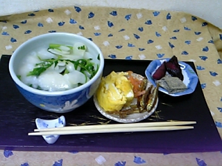 弟夫婦のお年賀にもらった鮎屋の佃煮。と玉子焼き。