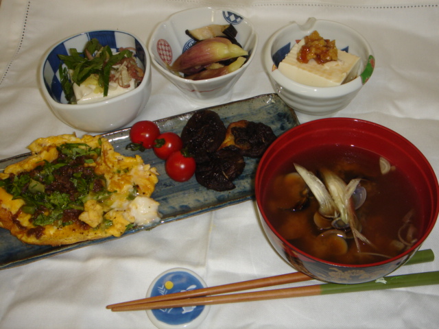 プレーンにおろし生姜と茗荷の大葉をのせてー
