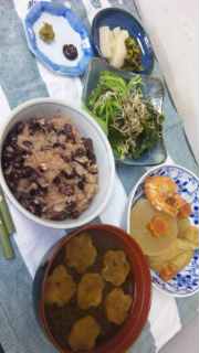お赤飯以外は手抜きなおかずで、日暮れまでに仕上がりました。