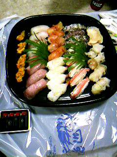 遅くて疲れてお腹が空いた時間に偶然お寿司やさんの患者さんが、お寿司を持って来てくれました8(≧∀≦)8