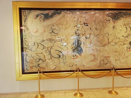 また駐車場となりの会食場ロビーには、棟方志功の絵が展示されていました。