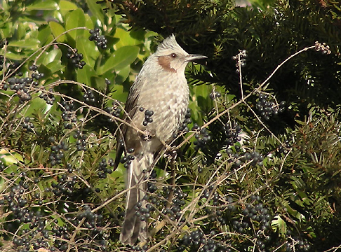 今日は生憎のドヨドヨ天気。 それでもお散歩に出かけたのは、キレンジャーキレンジャクの姿を求めるがために。 しかし、天気のせいか、はたまた、餌となるナナカマドの実がないせいか。キレンジャーキレンジャクの姿は、目星をつけていた場所には見当たらず。 おまけに、ヒヨちゃんとツグミちゃんとヤマガラっちを見かけて、すかさずシャッターを切ったものの、ぜーんぶ、シルエットクイーズッと来たもんだ。 そりゃないぜ、しぇきなべいべぇ。 この際だ、先日の日記に載せ損ねたヒヨちゃんの写真を載せちゃおう<どの際よ?トップの毛が逆立っていて、かっこいいのだ。