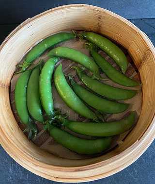 スナップえんどうを蒸してみました、こちらからお越し下さい。