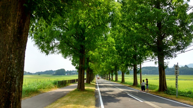 観光地にもなっている、メタセコイヤの並木です。人がいない状態で写真をとりたいのが人情