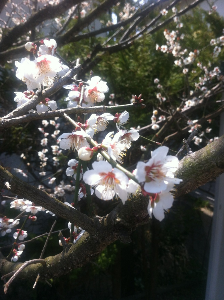 寒い日でした、、朝起きて、外の梅の木を毎日見ているのですが、今朝見たら、、白い花が3,4輪咲いていました!!しかも、去年と同じく4月2日の開花、、我が家の梅の開花宣言です!(^◇^)個蕾も固いのがたくさん付いているので昨年同様、4月いっぱいくらい、梅見が楽しめそうです!!やっと、です~ (^◇^)