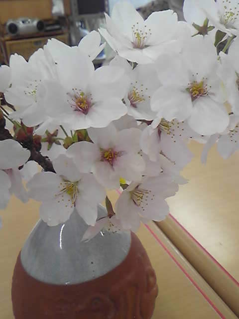 仙台は桜が満開です!リハビリの机の上にも、、、お迎えのバスの運転手さんがコースを変えて、見せてくれました!我が家前の小学校の桜、近くの公園の桜山、団地の神社のさくら、満開の桜をバスの窓から満喫、、、みんなで歓声を上げながら見ました~~私が1番歓声を上げていた、と思いますが、見たかった桜を1番艶やかな姿の時に見ることが出来て、最高に嬉しかったです!!運転手さん、ありがとうございます!!(^◇^)(^◇^)