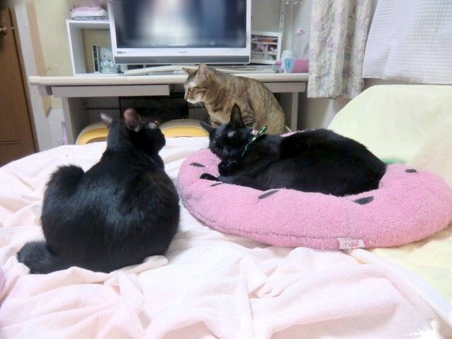 はっちゃくはおかあにゃんとすももの間にもぐってるのかな![]()