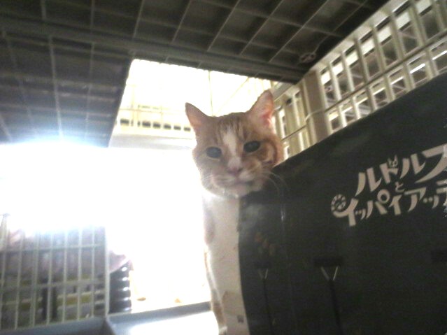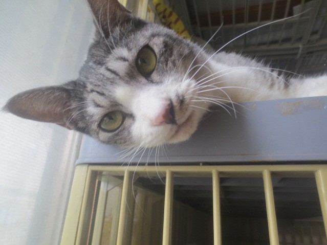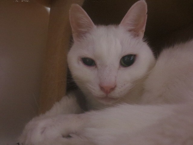 シロスケ(15)は細タワーのハウスで眠そうな顔してたよ