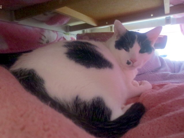 はち君(7)はこたつテーブルの下で眠そうな顔してたよ