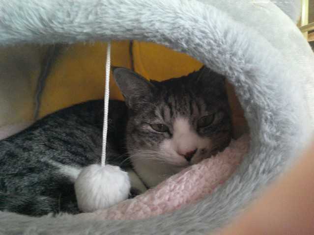 サバオ(11)はサバトラハウスで眠そうな顔してたよ