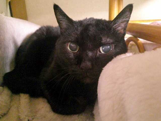 クロスケ(16)はまたこの猫ベッドに戻ったから写しやすいよ