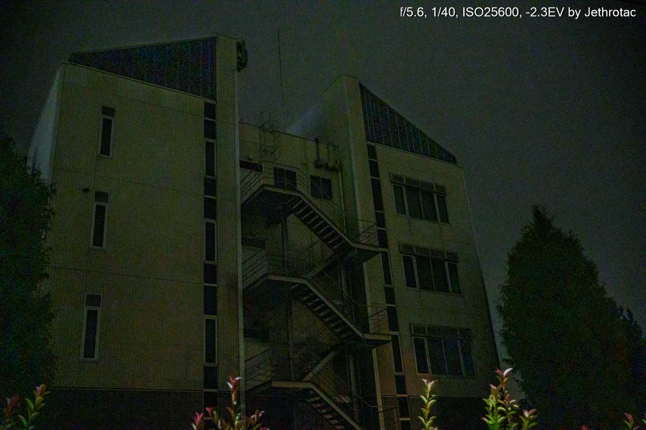 ★ α7IV + α7S & FE 35mm F1.8 & FE 100mm F2.8 STF GM の巻 ★このところCobbyの夜散歩での「散歩撮」が面白くなってます。先日α7Sで使えばオールドレンズでも夜の散歩撮はけっこう楽しくなりそうだという記事を書きました。そこで今回はα7Sとα7IVを使って今までできそうでできなかった「高感度での描写比較」をしてみようかと思います。この夜散歩がノイズが出まくるであろう光のとても弱い状況と街灯はある程度あって撮り方によってはノイズを気にせずに済むような状況という両方のパターンが撮影可能でしたので丁度良いかなと思っての比較です。以前にα7IVでの紹介でα7IIIと比べると若干高画素になって高感度では不利かなと書きました、SONYも今回α7IIIに比べその弱点を(もちろんノイズを抑えながら)解像度優先といった方向で対処しているようなところも見どころとなりそうです。そして高感度耐性といえばα7S、α7IVとは開発年度でいえば7年の開きがありますが初代とはいえ1画素の余裕はまるで違います。新開発のセンサー&描画エンジンを積むα7IVが高感度に対してどう臨むのか2台の違いを見ていくことにしたいと思います。まずはほぼ真っ暗な状況での比較です。普段どちらのカメラもISO感度上限設定を<25600>にしていますので、その上限値での描写比較をしてみました。<レンズはどちらもFE 35mm F1.8>[ISO25600:α7IVの場合](※この夜の撮影時間がα7Sの時より2時間ほど早くこちらの方が敷地内に点いている街灯の数が若干多かった)[ISO25600:α7Sの場合]どちらもノイズ処理をLightroomにて「30」程度施してあります。2枚とも「A(露出優先)」での撮影でISOオートの上限も<ISO25600>にしてありますのでその上限に達してます。やはりα7IVの方はノイズはかなり乗りますがその解像感は見事なものですよね、暗くて見えない細部まで精細な描写が光ります。加えて現像していてLightroomでノイズ低減処理(手動)をしてみると、ノイズは消えませんが大きく効果をかけてもコントラストが落ちて描写が甘くなるようなところはほぼ見られませんでした。もう一方のα7Sですがやはりノイズ感は少ないですね、画素数の少なさからか逆にノイズ処理を大きくかけると描写が崩れ始めます。とはいえノイズ処理が不要なくらいその描写にはしっかりと階調性が残されて鑑賞に耐える描写になっていると思います。ただし今回2台で純正レンズの「FE 35mm F1.8」を使って撮り比べをしていてAFの食いつきの度合いがかなり違ったのには驚きました。α7IVでは通常と同様にすんなりAFが効くのに対し、α7Sの方はマクロレンズで超近接撮影をしているかのごとく行ったり来たりで迷うことが多かったですね...7年という隔たり(進化)を感じさせられました^^;)。次にα7Sだけですが「M(マニュアル露出」で追い込んだ画を見てみたいと思います...4段以上明るくなる開放にすればもっとベース感度に近づくのですが、ここではある程度ISO感度が高くなるよう敢えて<f/5.6>で揃えました。[ISO3200:α7Sの場合]こちらはご覧のようにノイズ処理を必要と感じません、やはりこうした光がほぼない状況でのα7Sの優位性は強く感じます。SSが「0.6秒」となり手持ちではきつく星で見るとわかるように若干の手ブレが見られますが建物の描写にはそれほどの影響を感じないほどにしっかり撮れていました...暗すぎる環境でのα7Sのピントの甘さはありそうですが^^;)。ちなみにこちらでのノイズ処理のしていないα7IVの画像を貼っておきましょうか...ノイズが多いとはいえ「ノイズまみれ」で見られないというほどではないのがBeyond Basicの凄いところですかね(笑)。次に街灯など光がある程度ある環境での比較をしてみます。[ISO5000:α7IVの場合][ISO3200:α7Sの場合]2枚の写真でISO感度の違いはファインダーでの感触で同程度の明るさを維持した感覚での違いです、不思議にα7Sの方が明るく感じたんですねISO3200までしか行ってません(笑)。どちらもノイズ処理はしていませんが、さすがにα7IVはメリハリが効いている感じで好感が持てます。ISO5000くらいまでだとさすがに「α7IV」の進化がハッキリ見られる感覚でしょうか。[ISO5000:α7IVの場合]どうでしょう...ノイズ感は否めませんがそれなりにしっかりした描写になってます。ただし細部に目をやると道路のペイントなどにはノイズが酷く目立ちます。そこでLightroomでのAIによるノイズ処理を試してみました...気になるノイズ、特に道路のペイント部分などはノイズ除去の効果はとても大きく眼を見張るほど。ですがこのAI処理にはとても時間がかかり私の古いCPUのCore i5とグラボのQuadro K620では数分以上の時間を要しました...私の場合結果で比べると手動で十分な気がします^^;)。一方α7Sでは...[ISO3200:α7Sの場合]α7IVのものと比べ「Christmasツリー」などが消えているのと青い光がありませんのでコントラストが弱めで地味めな感じですが、ノイズ感少ない程よい階調性を感じ取ることができます。そうそう、ツリーに光が灯っていた時間帯に「FE 35mm F1.8」と「FE 100mm F2.8 ST