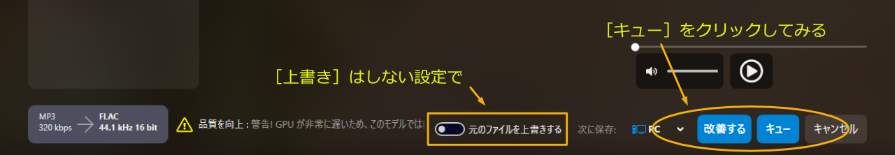 | 高解像度/長時間の動画を高速な AI 改善モデル(Vega、Polaris、Antaresなど)で処理する場合(中間性能 GPU) | Nvidia GTX 1060-6GB, Nvidia GTX 1070,Nvidia RTX 2060, Nvidia GTX 1660S (Super), AMD RX 580, Nvidia GTX 1060-3GB,Nvidia GTX 1660-Ti, Nvidia RTX 2060S (Super), AMD RX 570 , Nvidia RTX 3060(laptop) |