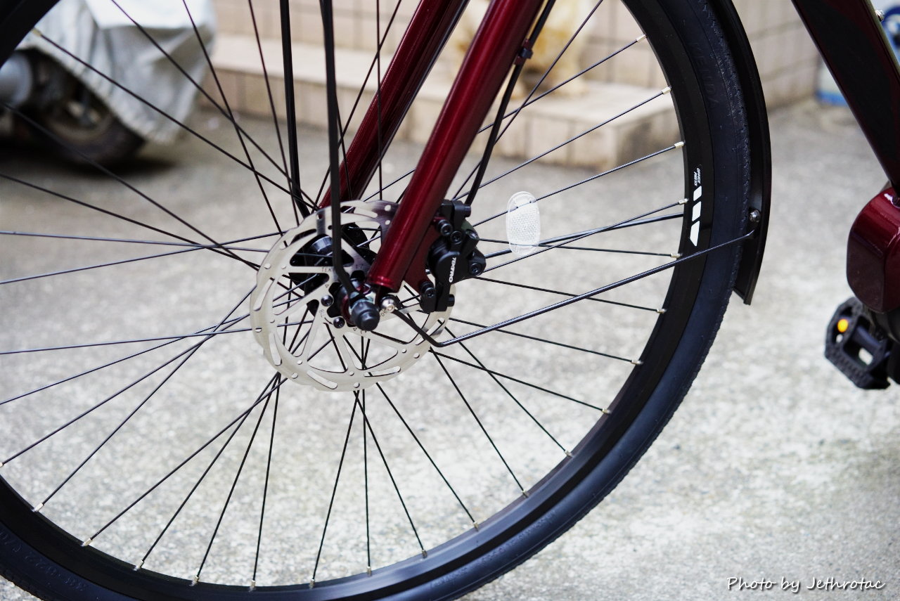 指2本か3本で優しく使ってくださいと言われた油圧式ディスクブレーキ、今までの感覚で後輪ブレーキをかけたらタイヤがロックしてびっくり(笑)。