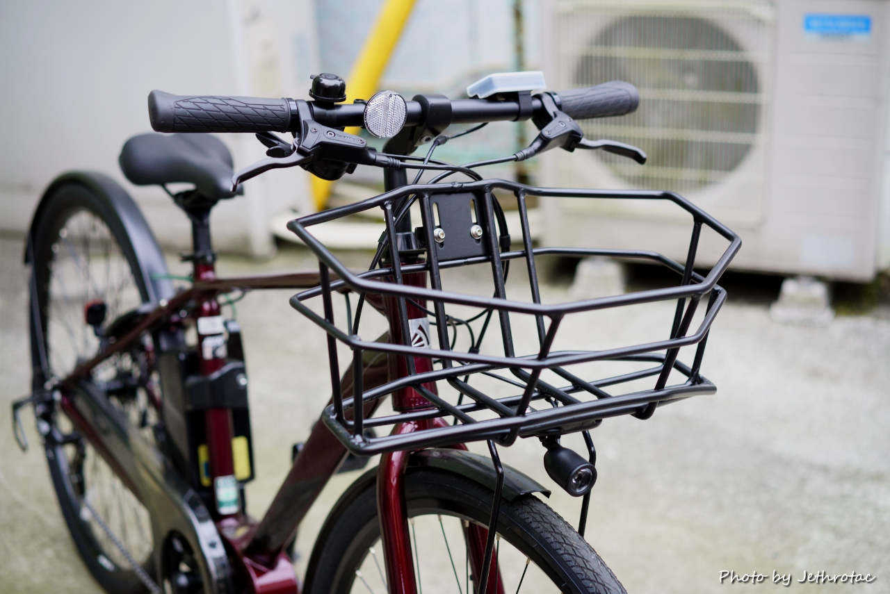 ファッション性は高いが実用性にはちょっと難点があった前カゴ、スタイルは良いのですがご覧のようにカゴの下面の隙間が多くてカバン・バッグなどはよいのですが会社帰りにコンビニで買物をした袋に入れたペットボトルが重みで隙間から垂れ下がるようになってしまいました^^;)。