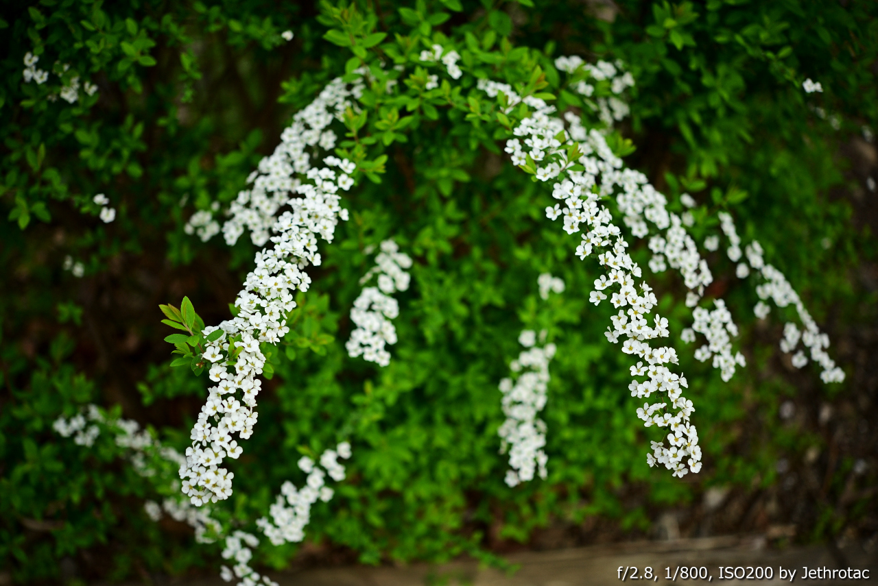 今年もこのユキヤナギとソメイヨシノのピークはうまく合わなかったようですが、そのピークを迎えていたユキヤナギたちです。夕方5時前後という時間が悪く白が映えませんが、何回見ても葉の緑とのコントラストは素敵ですね。
