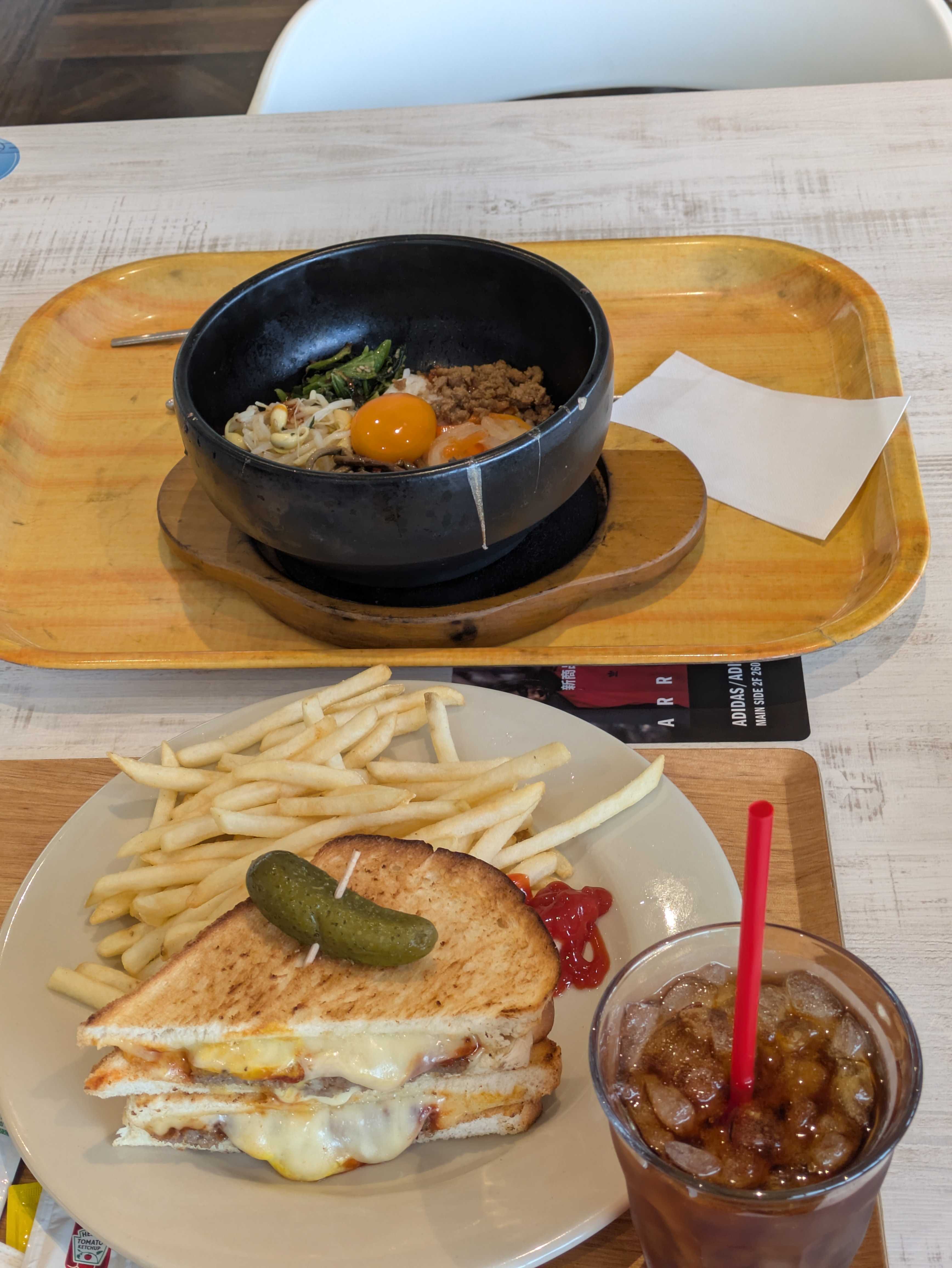 母のビビンバ、わたしはチーズサンドを頼みました。