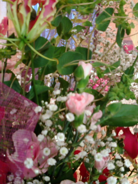 アレンジフラワーです。カーネーションの色がとても淡くてかわいいです。 カスミ草って白くてこの小ささがいいよねレースフラワーも小さいお花がたくさん集まっているけどレースフラワーを名付けた人がすごいと思う。本当にレースのハンカチみたいだもん。 レースといえば、学生のころベルギーに行ったとき、レース編みで有名な村に行きました。そのレースのお店には触れたら壊れそうなぐらい繊細な商品がいっぱい並んでいました。どれも手作りのものばかり☆お店ごとかっていきたいぐらいどれもきれいでした。確かおみやげに、ハンカチと日がさをかいました。