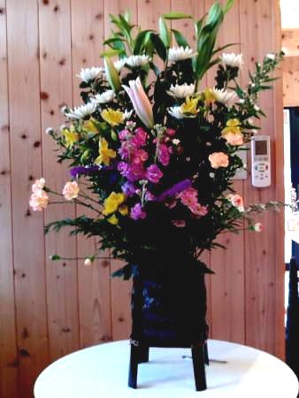 少し前の作品です。町内の会館での講演会に生けました。今日は文章が上手に書けません。それでここで花とは全く関係ないこと。思いついたことを書いてまいます。いままで私を支えてくれた方々、本当にありがとうございます。改めて今になってしみじみ思います。私は2代目花屋です。親のありがたみに今になって気づきます。でも、思っているほど上手には伝えられません。顔を見たらあーでもないこーでもない。そして、私のような力なきものがなんとかこの3年間やってこれたのは、昔からのお客様、新しいお店のお客様皆さんに、支えていただいています。誤解をおそれず申し上げると「国道に出店したらたくさんのひとが知ってくれて すぐにお客様もついてきてくれるサー」 ナントカナルサーなどと思い上がっていました。そんな思いが甘ちゃんの幼い考えだと世間が教えてくれました。そして、今思うこと・・・お客様あっての自分、心からのお花を尽くしたい 今出来ること・・・・日々ありがとうの気持ちで仕事に向き合うこと仕事にいつも真剣でありたい。それが、私のお店に来ていただけるお客様への心からの誠意。