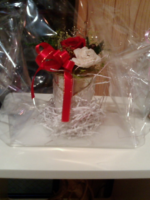 赤いバラが御祝いっぽいですか!?いつになく大急ぎで仕上げました。お客様のご要望ですぐに作って持ってきて欲しい。プリザーブドのアレンジです。これから長く愛用してもらえるようしっかり作りました。少々急いでいますが、手はぬいていません~^^~。